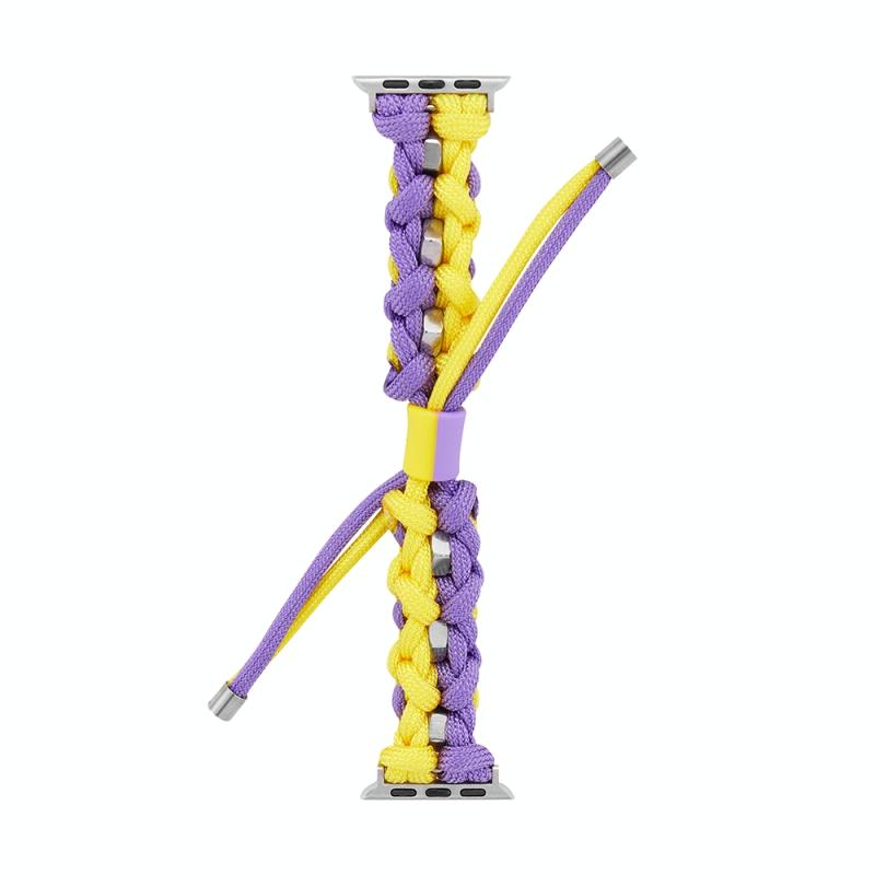 For Apple Watch Series 3 38mm Screw Nut Dual-Color Braided Paracord Watch Band(Purple Yellow)