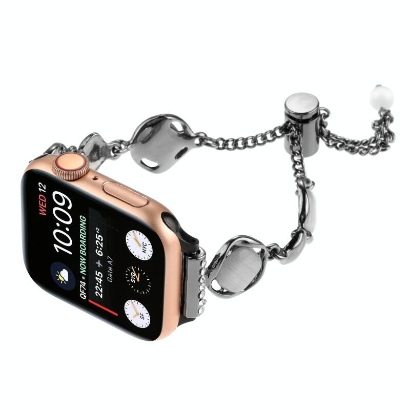 For Apple Watch Series 3 38mm Shell Metal Chain Bracelet Watch Band(Black)