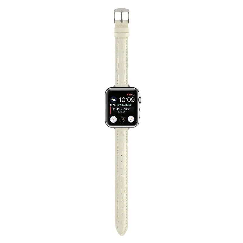 Για Apple Watch Series 3 38mm Λεπτό Δερμάτινο Λουρί Κροκόδειλου (Μπεζ)