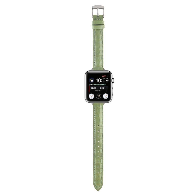 Για Apple Watch Series 3 38mm Λεπτό Δερμάτινο Λουρί Κροκόδειλου (Ανοιχτό πράσινο)