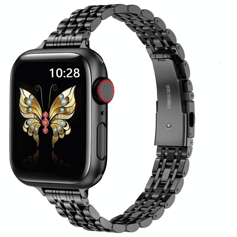 Για Apple Watch Series 3 38mm Λεπτή Ατσάλινη Ζώνη Ρολογιού με Αγκράφα Slingshot Επτά Σφαιρών (Μαύρο)