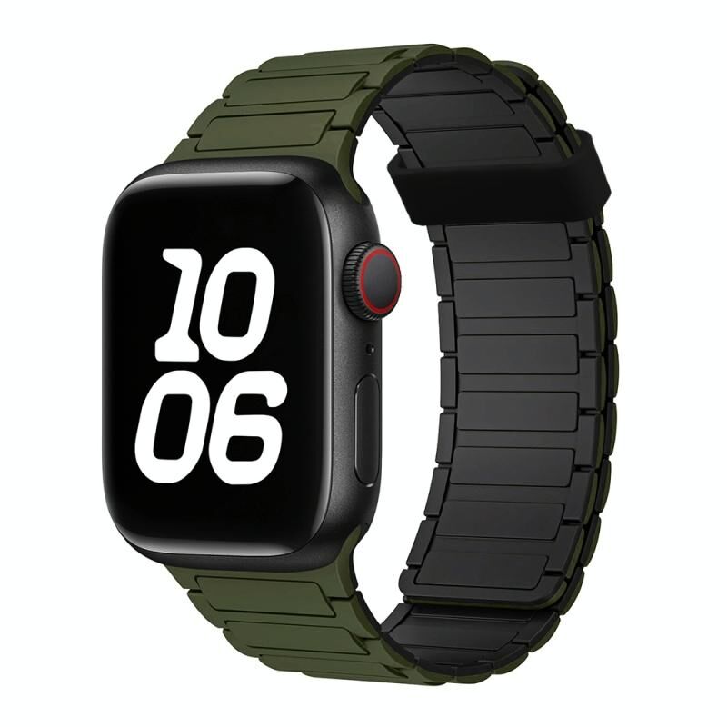 Για Apple Watch Series 3 38mm Τρίχρωμη Μαγνητική Σιλικόνη Λουράκι (Πράσινο Στρατού - Μαύρο)