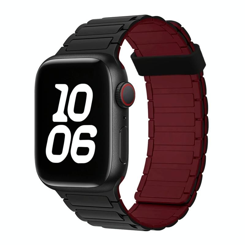 Για Apple Watch Series 3 38mm Τρίχρωμη Μαγνητική Σιλικόνη Λουράκι (Μαύρο Κρασοκόκκινο)