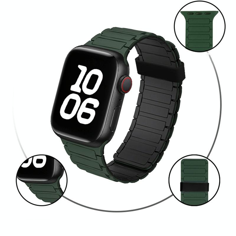 Για Apple Watch Series 3 38mm Τρίχρωμη Μαγνητική Σιλικόνη Λουράκι (Φωτεινό Ροζ)