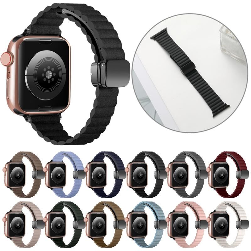 Για Apple Watch Series 3 38mm, Μαγνητική Αγκράφα Δίπλωσης με Εφέ Νερού, Στυλ: Λεπτή Έκδοση (Σκούρο πράσινο)
