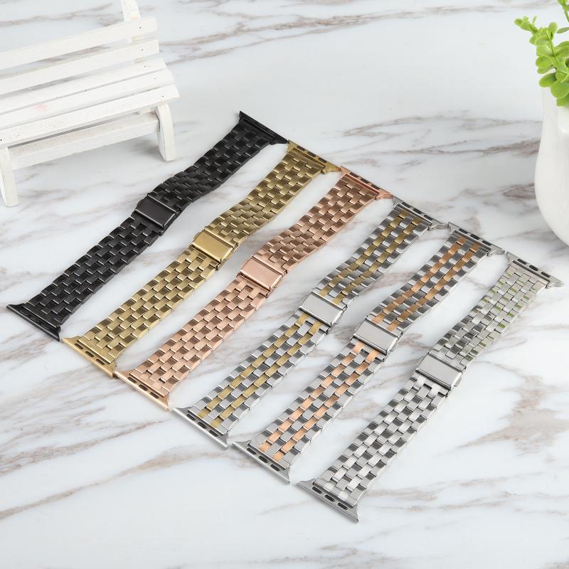 Για Apple Watch Series 3 42mm 22mm Εξαιρετικά λεπτό λουρί ρολογιού από ανοξείδωτο ατσάλι με πέντε χάντρες (Ασημί Χρυσό)