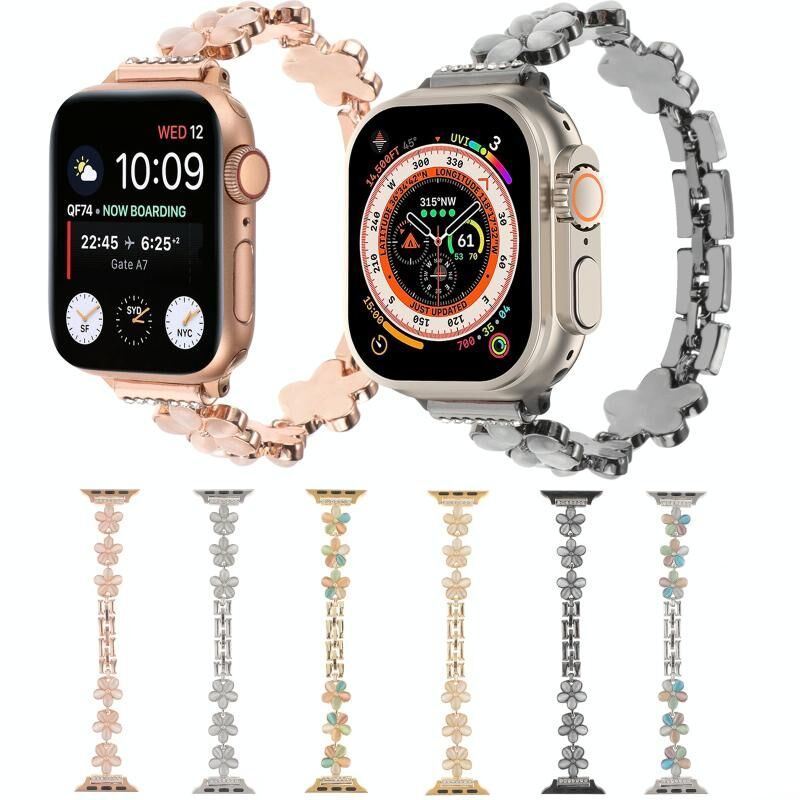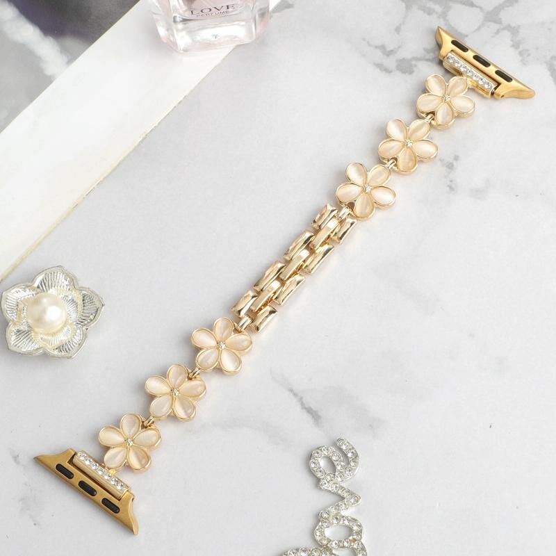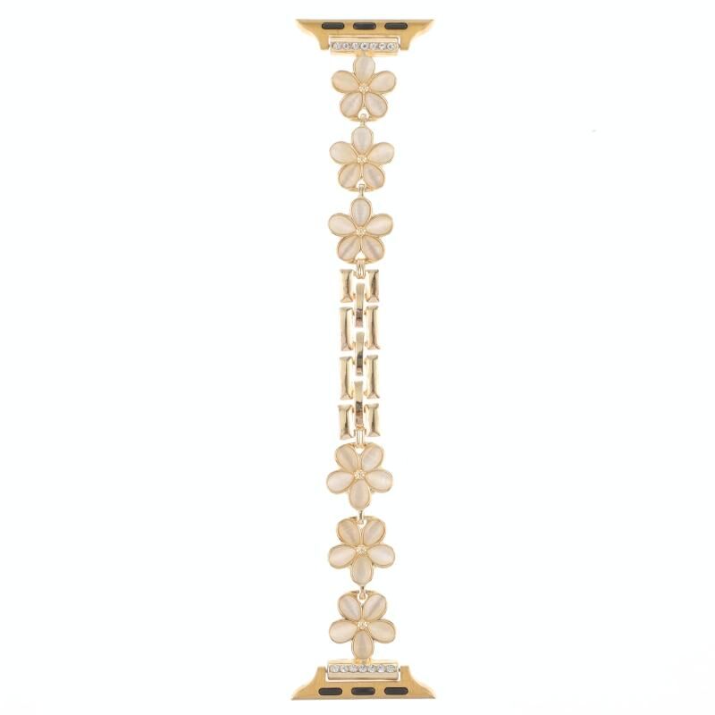 Για Apple Watch Series 3 42mm Λουρί ρολογιού από κράμα ψευδαργύρου με αλυσίδα λουλουδιού 5 πετάλων (Χρυσός)