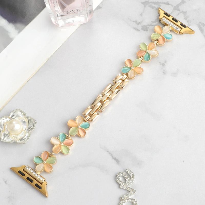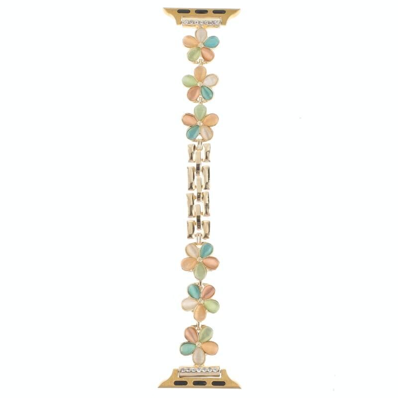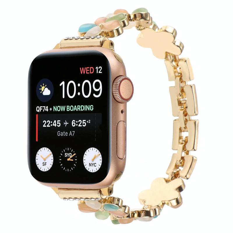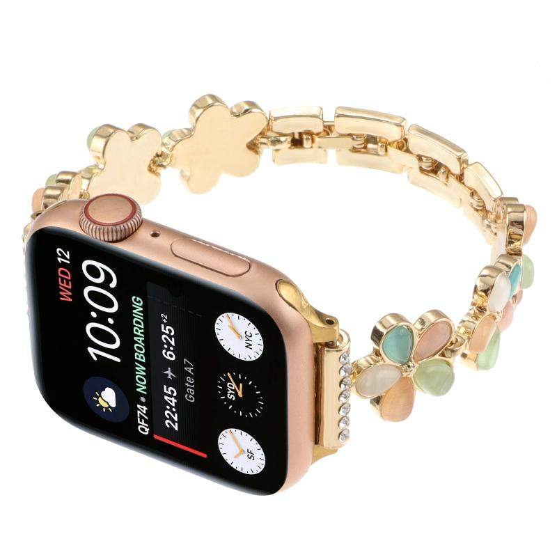 Για Apple Watch Series 3 42mm Λουρί ρολογιού από κράμα ψευδαργύρου με αλυσίδα λουλουδιού 5 πετάλων (Μαύρο)