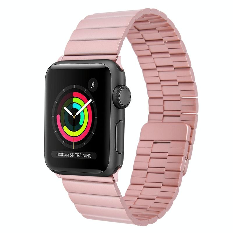 For Apple Watch Series 3 42mm Bamboo Stainless Steel Magnetic Watch Band(Pink)