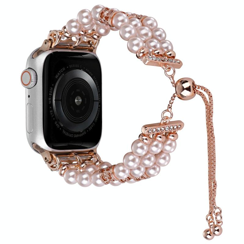 For Apple Watch Series 3 42mm Beaded Pearl Retractable Chain Watch Band(Pink)