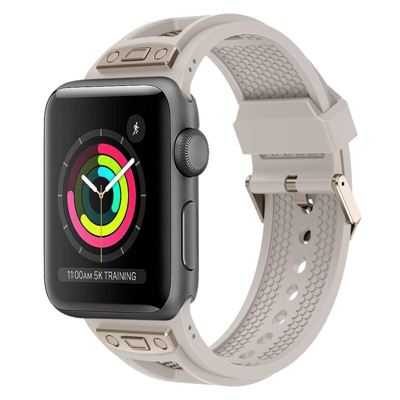 For Apple Watch Series 3 42mm Breathable Stainless Steel Mesh TPU Watch Band(Starlight Titanium)