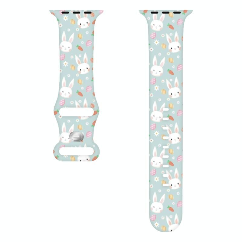 Για Apple Watch Series 3 42mm Λουράκι Σιλικόνης με Αγκράφα Πεταλούδας με Εκτύπωση Πασχαλινή (Ανοιχτό Πράσινο Κουνελιού)