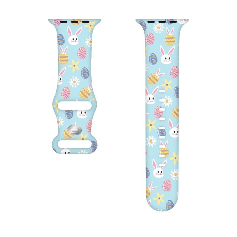 Για Apple Watch Series 3 42mm Λουράκι Σιλικόνης με Αγκράφα Πεταλούδας με Εκτύπωση Πασχαλινή (Μπλε Κουνελάκι)