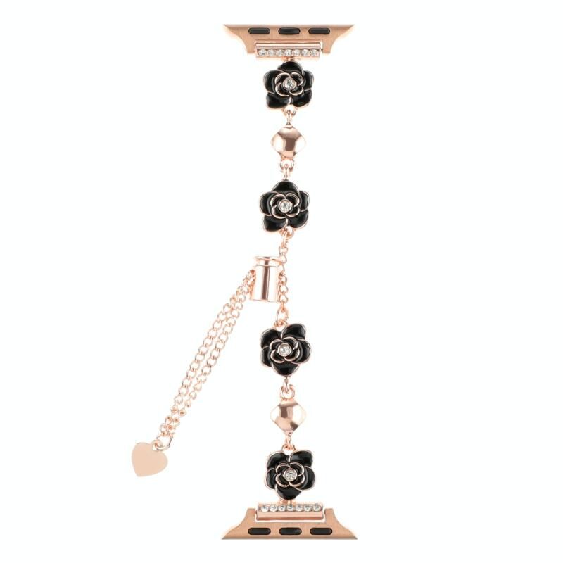 Για Apple Watch Series 3 42mm Μεταλλικό Μπρασελέ Λουλουδιού Καμέλια (Μαύρο Ροζ Χρυσό)