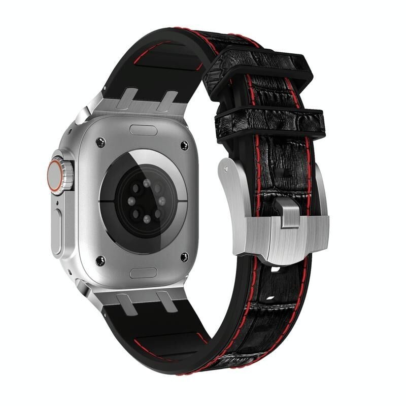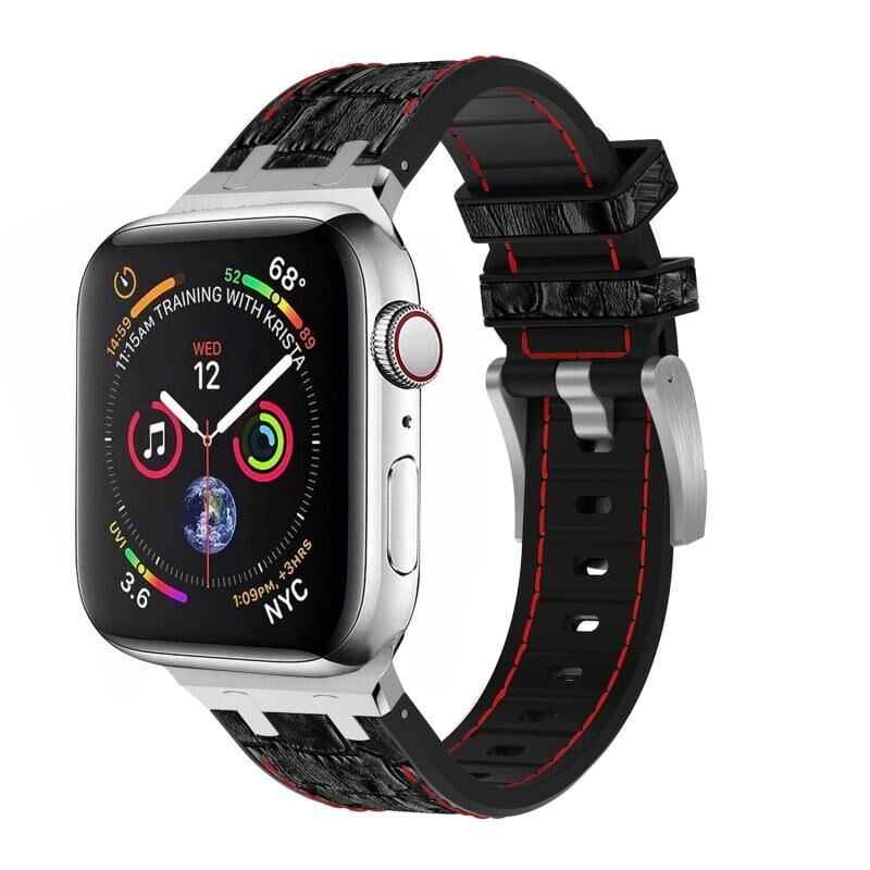 Για Apple Watch Series 3 42mm Λουρί Σιλικόνης Υγρού με Υφή Κροκόδειλου (Ασημί Κόκκινο Μαύρο)