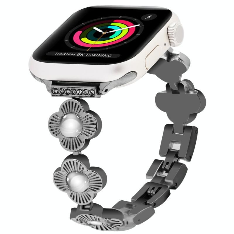 Για Apple Watch Series 3 42mm Λουρί ρολογιού από μέταλλο με αλυσίδα και γρήγορη απελευθέρωση Τριφύλλι (Μαύρο)
