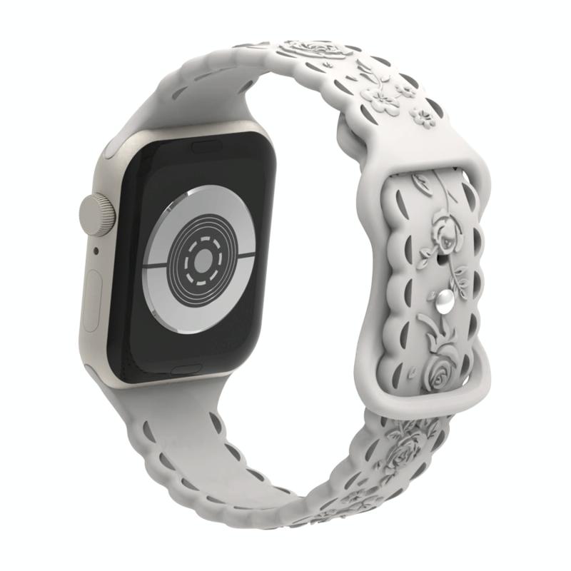 Για Apple Watch Series 3 42mm Δαντέλα 3D Ροζ Χαραγμένο Λουράκι Σιλικόνης (Αστρόφωτο)