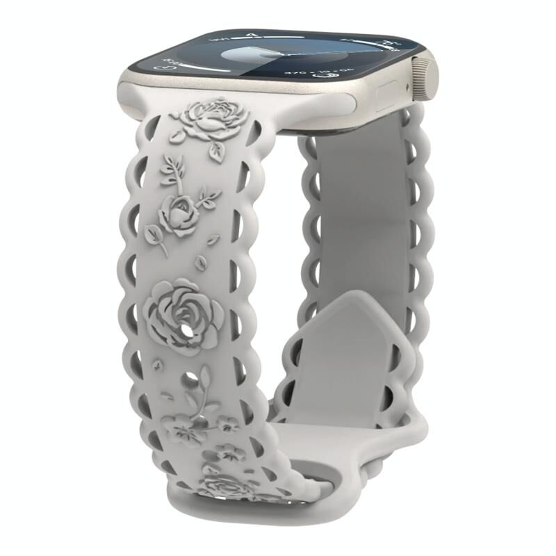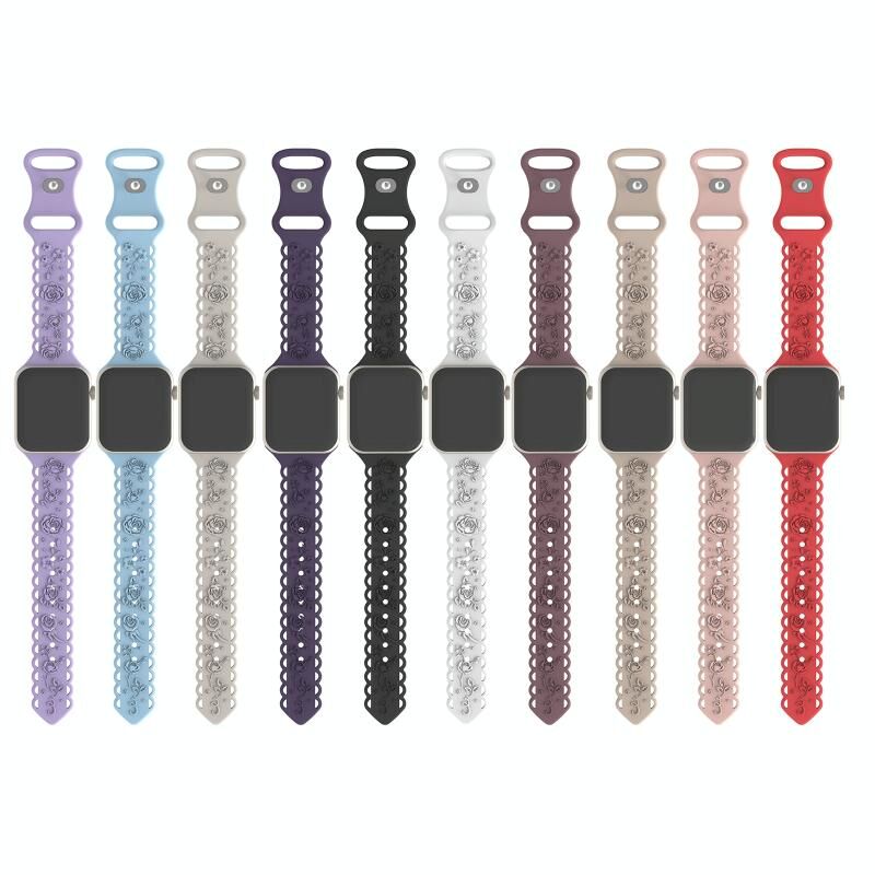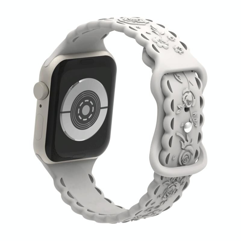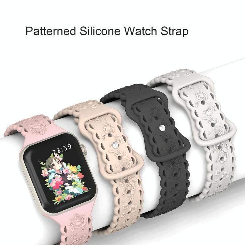 Για Apple Watch Series 3 42mm Δαντέλα 3D Ροζ Χαραγμένο Λουράκι Σιλικόνης (ρόδινο)