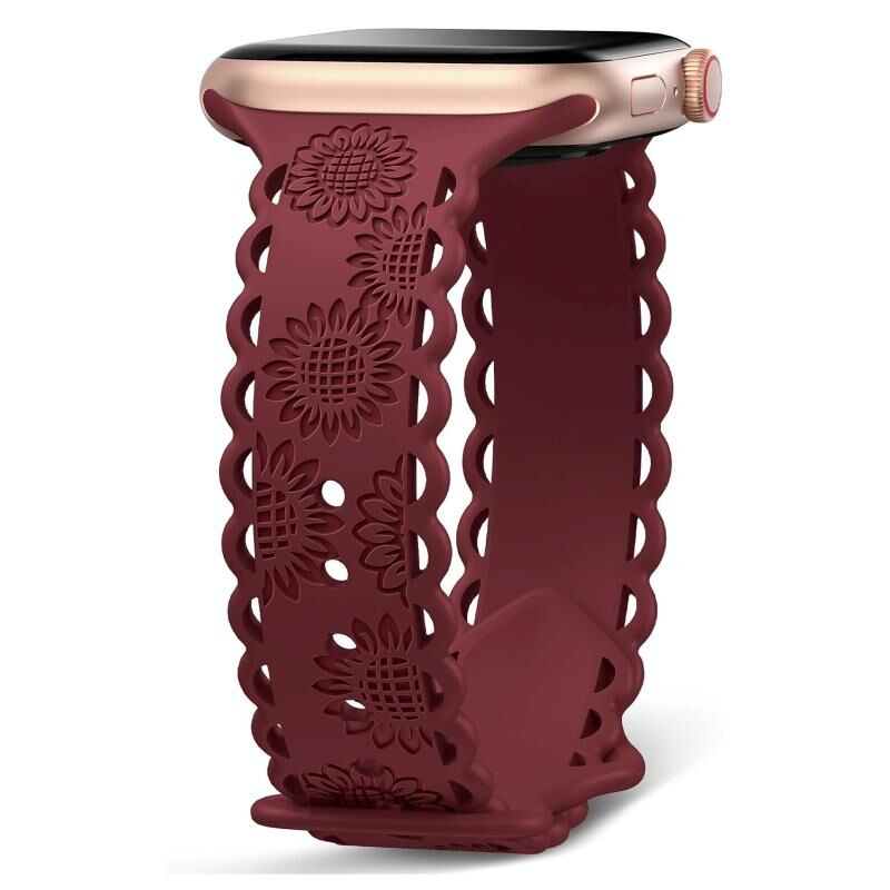 Για Apple Watch Series 3 42mm Δερμάτινο Λουρί Σιλικόνης με Δαντέλα και Χαραγμένο Ηλιοτρόπιο (Μαύρο)
