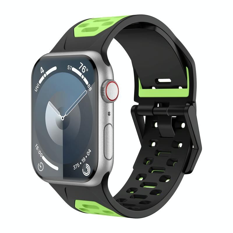 Για Apple Watch Series 3 42mm Ζώνη Ρολογιού από Διχρωμική Σιλικόνη μετεωρίτη (Μαύρο πράσινο)
