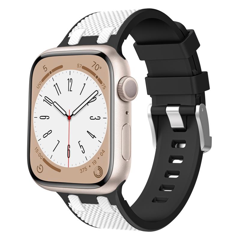 For Apple Watch Series 3 42mm Oak Silicone Watch Band(Black White)