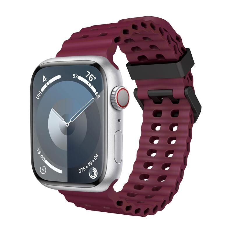Για Apple Watch Series 3 42mm Λουρί Σιλικόνης Ocean Διπλής Σειράς με Οπές (Κρασοκόκκινο)