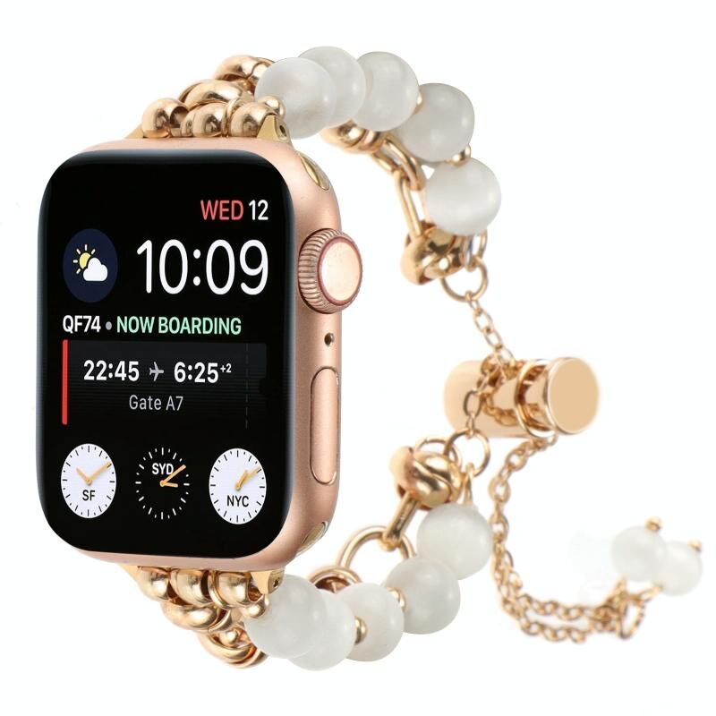 Για Apple Watch Series 3 42mm Μεταλλικό Μπρασελέ με Αλυσίδα Μαργαριταριών (Λευκόχρυσο)
