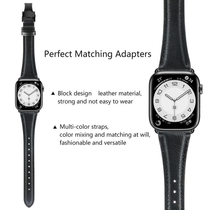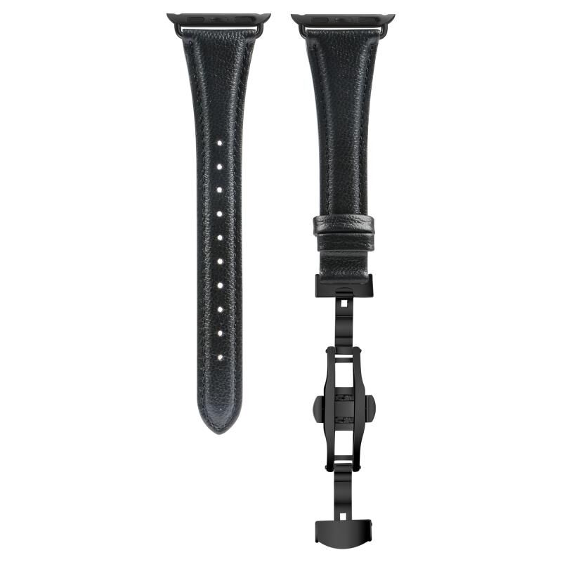 Για Apple Watch Series 3 42mm Απλό Δερμάτινο Λουράκι με Αγκράφα Πεταλούδας (Μαύρο + Μαύρο)