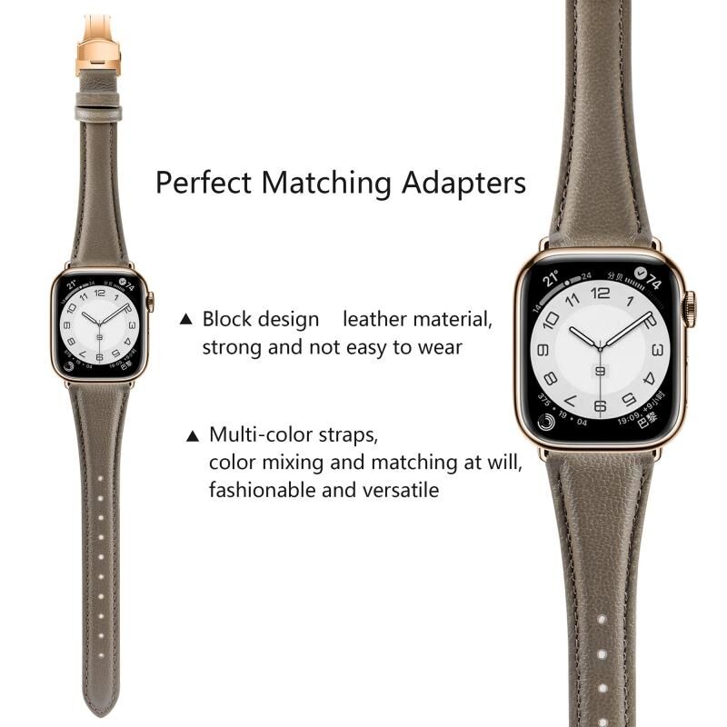 Για Apple Watch Series 3 42mm Απλό Δερμάτινο Λουράκι με Αγκράφα Πεταλούδας (Σκούρο Καφέ+Ασημί)