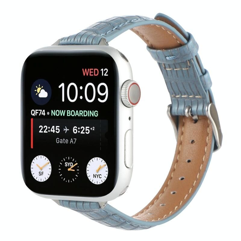 For Apple Watch Series 3 42mm Slim Crocodile Leather Watch Band(Light Blue)
