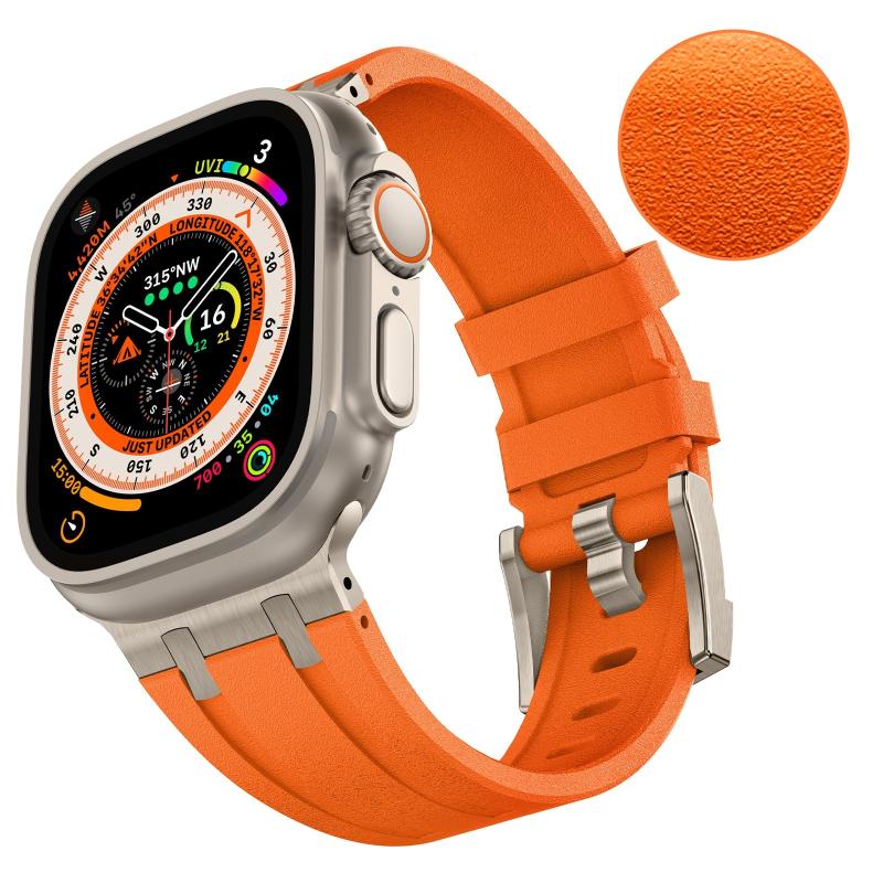 For Apple Watch Series 3 42mm Stone Grain Liquid Silicone Watch Band(Titanium Orange)