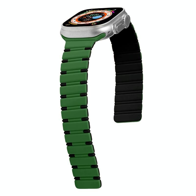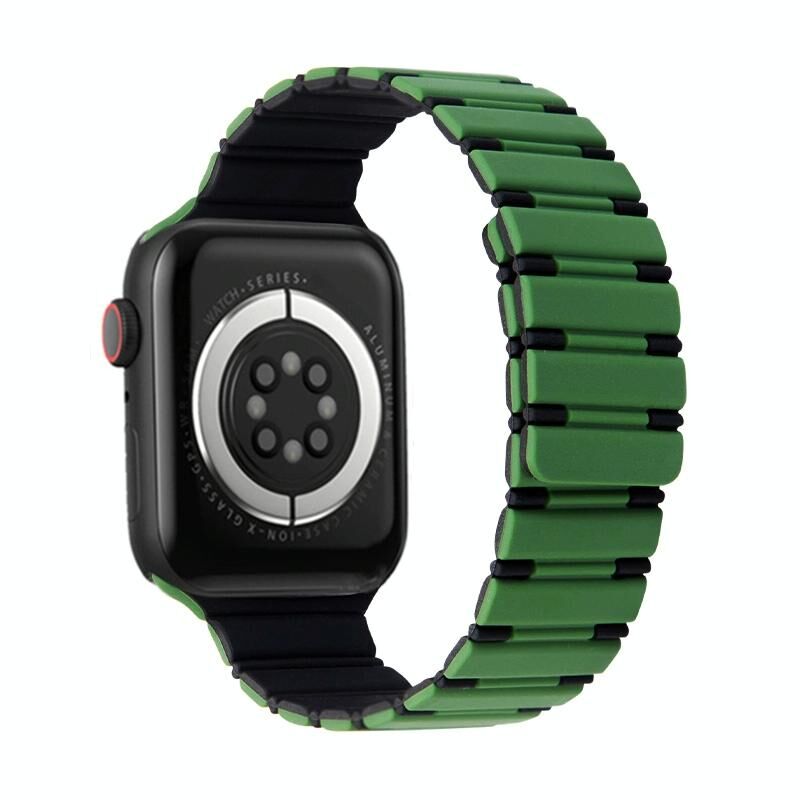 Για Apple Watch Series 3 42mm Διχρωματικό Μαγνητικό Λουράκι Σιλικόνης (Πράσινο Μαύρο)