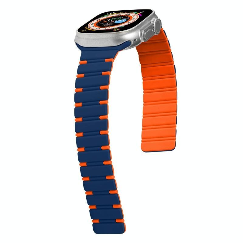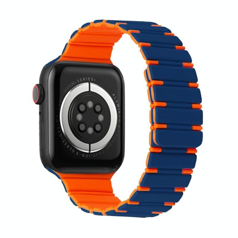 Για Apple Watch Series 3 42mm Διχρωματικό Μαγνητικό Λουράκι Σιλικόνης (Γαλάζια Ομίχλη Πορτοκαλί)