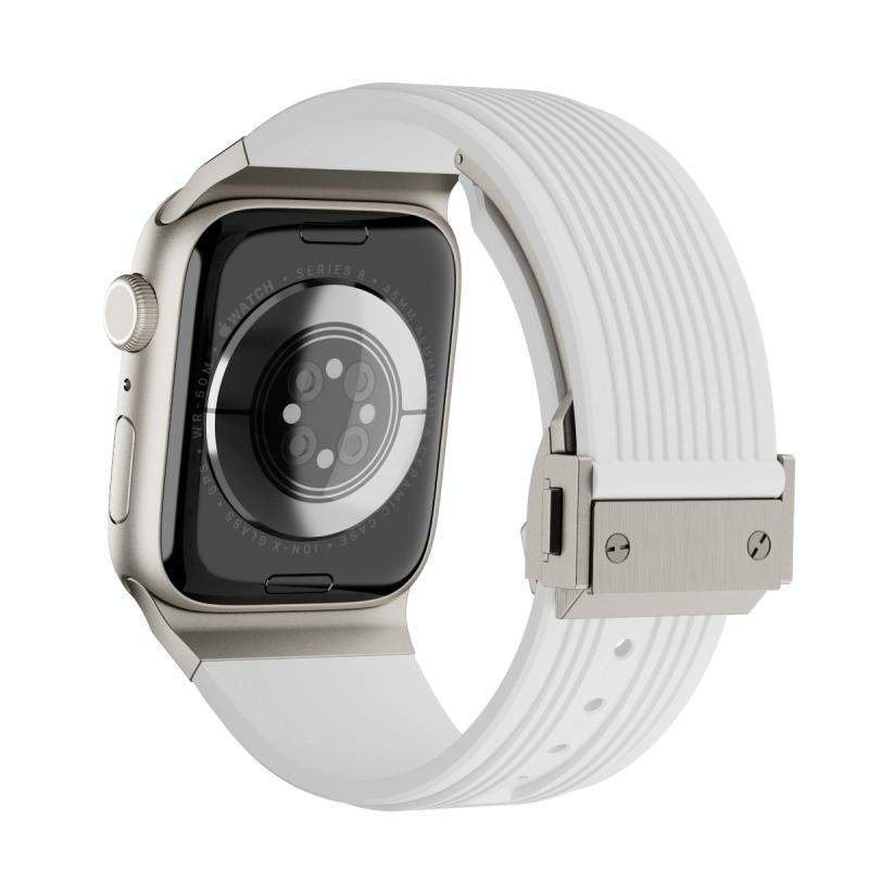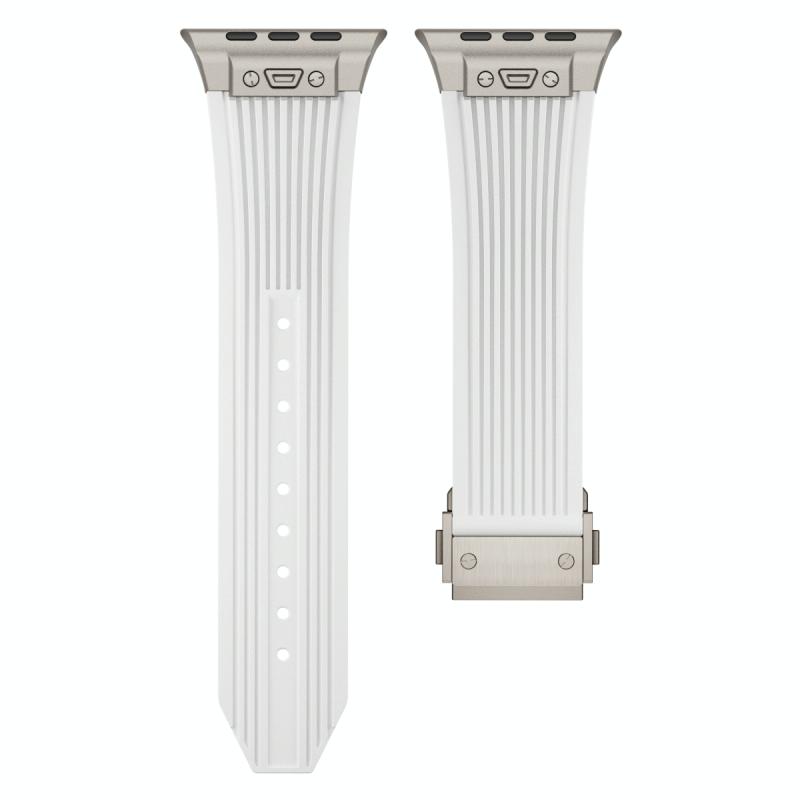 Για Apple Watch Series 3 42mm Κάθετη Υφή Τιτανίου Αγκράφα Ελαστική Σιλικόνη Λουράκι Ρολογιού (Λευκό)