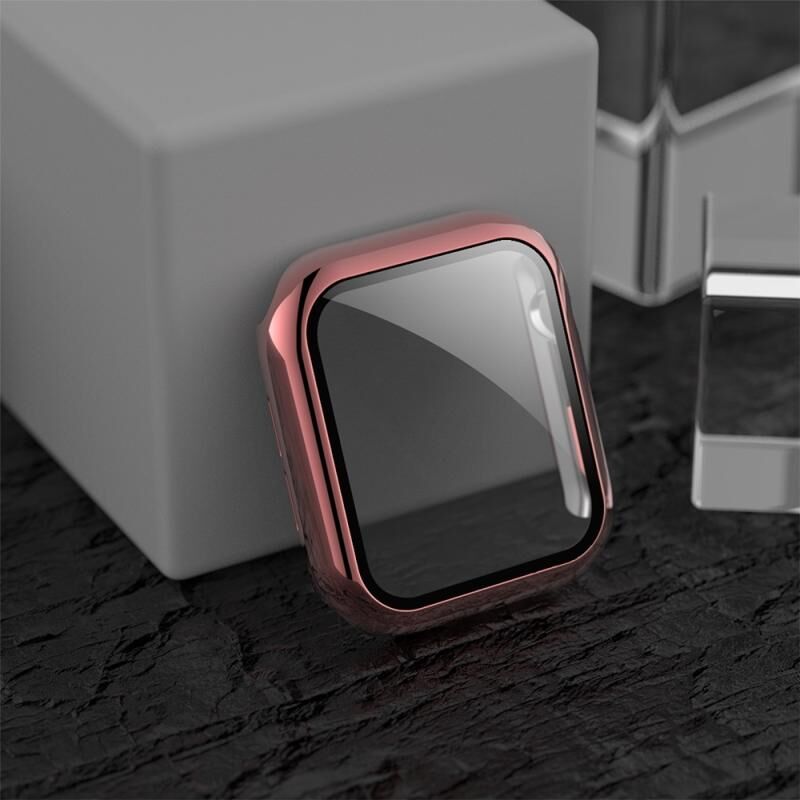 For Apple Watch Series 3 & 2 & 1 38mm Electroplated PC Case + Tempered Film Integrated Protective Cover(Pink)