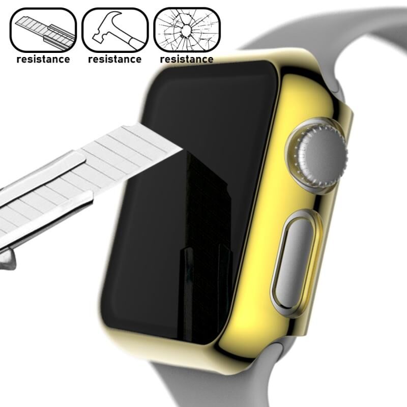 For Apple Watch Series 3 & 2 & 1 38mm Full Coverage Plating Glass Case(Gold)