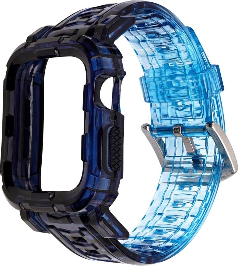 For Apple Watch Series 3 & 2 & 1 38mm Gradient TPU Integrated Case Strap(Double Blue-Silver Clasp)