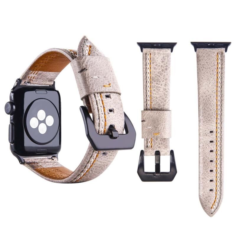 For Apple Watch Series 3 & 2 & 1 38mm Tiga Line Pattern PU Leather Wrist Watch Band (White)