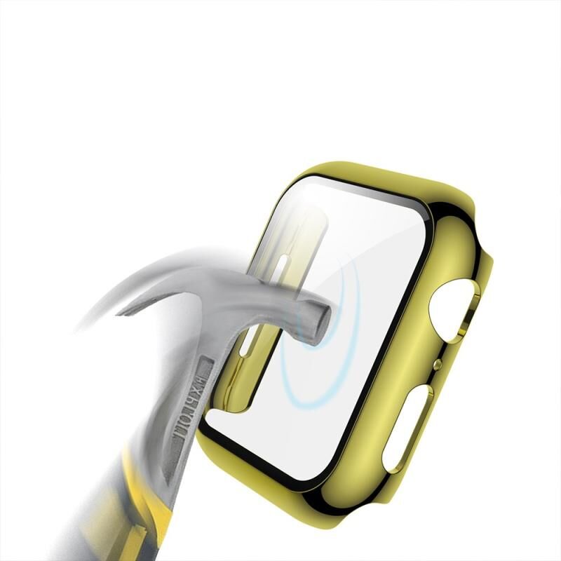 For Apple Watch Series 3 & 2 & 1 42mm Electroplated PC Case + Tempered Film Integrated Protective Cover(Gold)