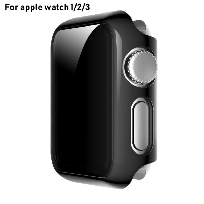 For Apple Watch Series 3 & 2 & 1 42mm Full Coverage Plating Glass Case(Black)