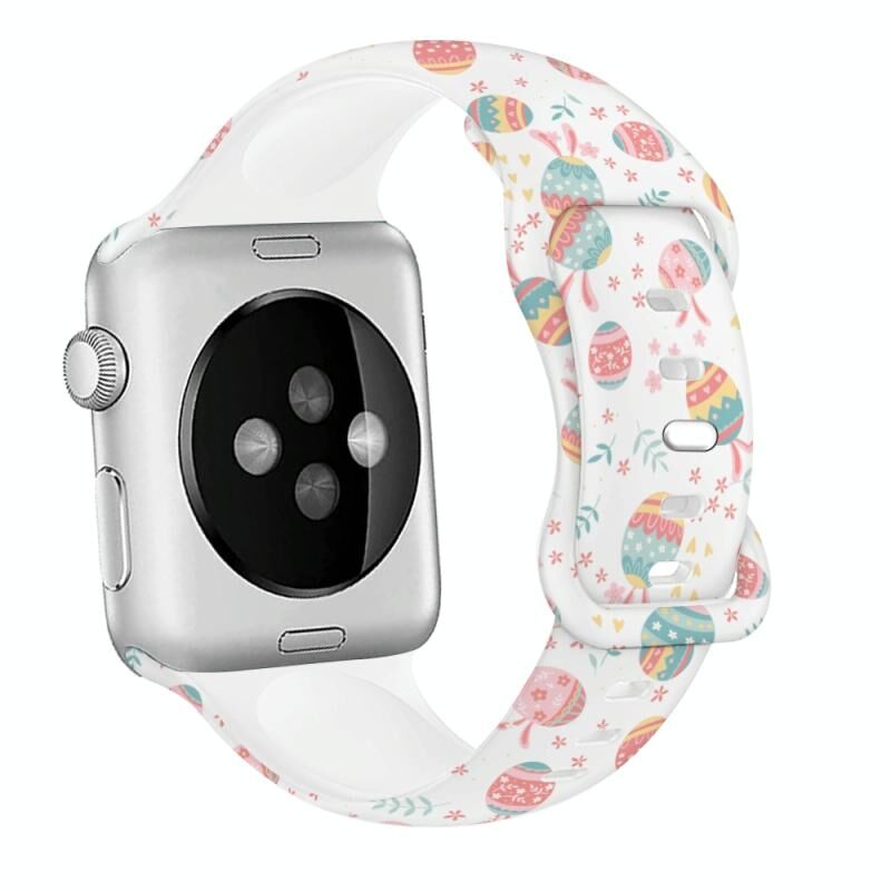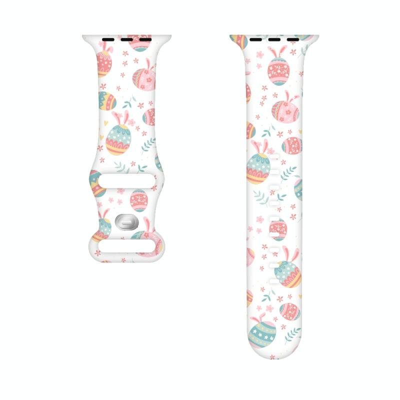 Για Apple Watch Series 4 40mm Λουρί Σιλικόνης με Αγκράφα Πεταλούδας με Εκτύπωση Πάσχα (Γαλάζιο Κουνελάκι)
