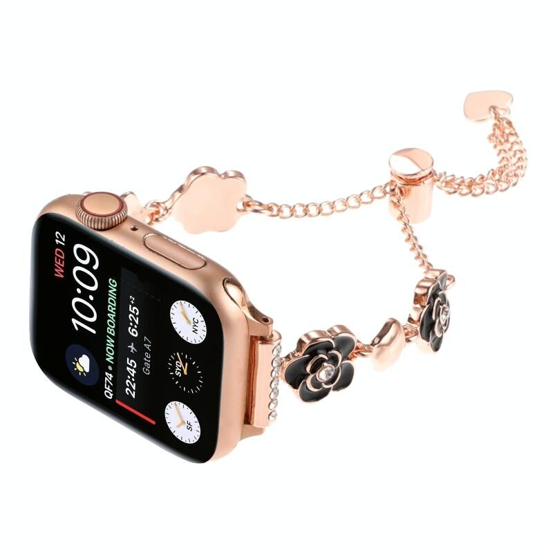 Για Apple Watch Series 4 40mm Μεταλλικό Μπρασελέ Λουλούδι Καμέλια (Μαύρο Ροζ Χρυσό)
