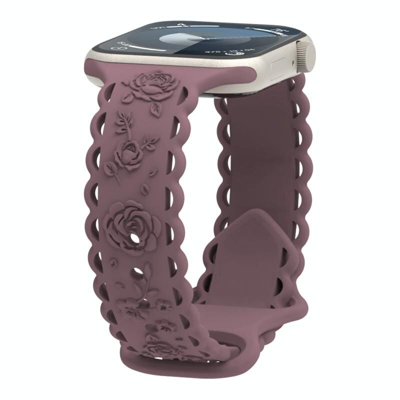 Για Apple Watch Series 4 40mm Δαντέλα 3D Ροζ Χαραγμένο Λουράκι Σιλικόνης (Μαύρο)