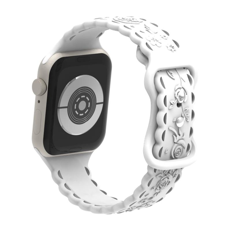 For Apple Watch Series 4 40mm Lace 3D Rose Embossed Silicone Watch Band(White)