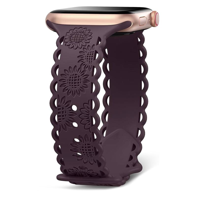 Για Apple Watch Series 4 40mm Δερμάτινο Λουρί Σιλικόνης με Δαντέλα και Χαραγμένο Ηλίανθο (Μαύρο)
