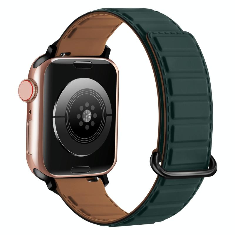 For Apple Watch Series 4 40mm Reverse Buckle Magnetic Silicone Watch Band(Black Buckle Green Brown)