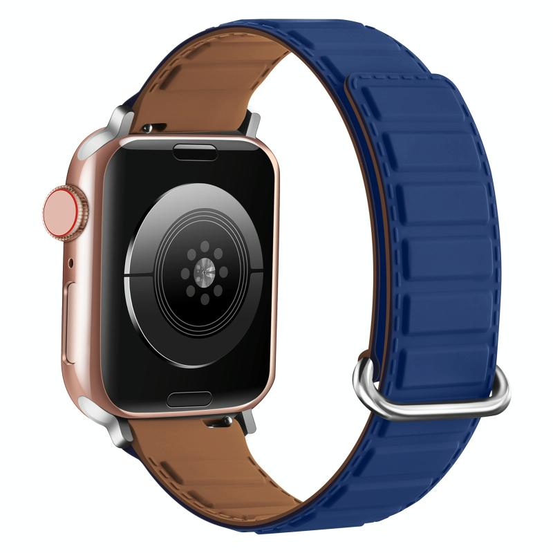 For Apple Watch Series 4 40mm Reverse Buckle Magnetic Silicone Watch Band(Silver Buckle Blue)