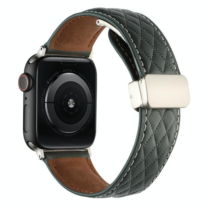 Για Apple Watch Series 4 40mm Λουρί Ρολογιού από Δέρμα με Μαγνητική Αγκράφα Δίπλωσης σε Σχήμα Ρόμβου (Σκούρο πράσινο)