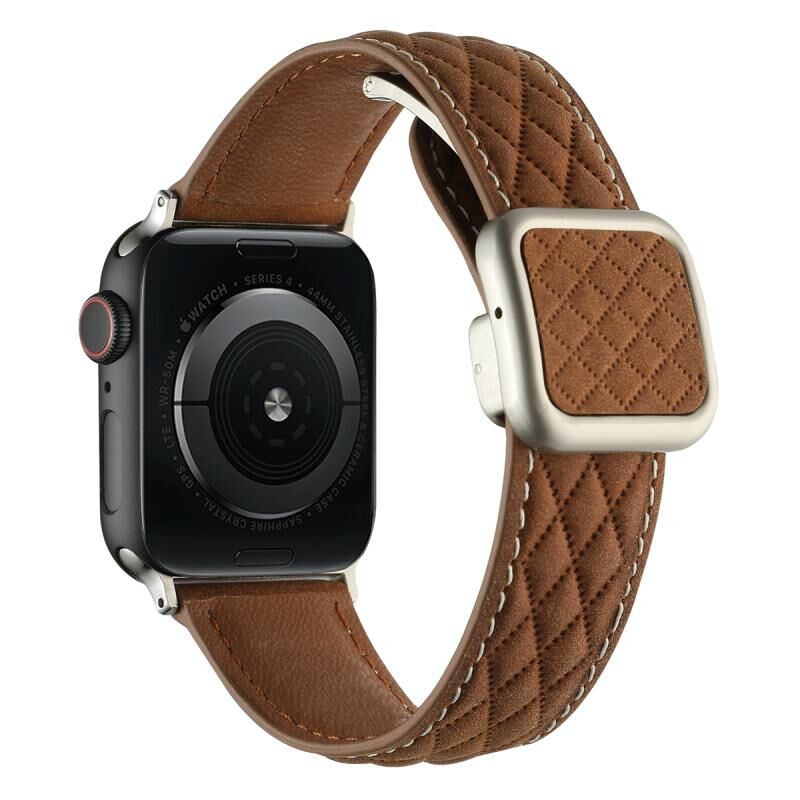 Για Apple Watch Series 4 40mm Λουρί Ρομβόμορφο Μαγνητικό Δερμάτινο με Αγκράφα Τετράγωνη (Σκούρο καφέ)