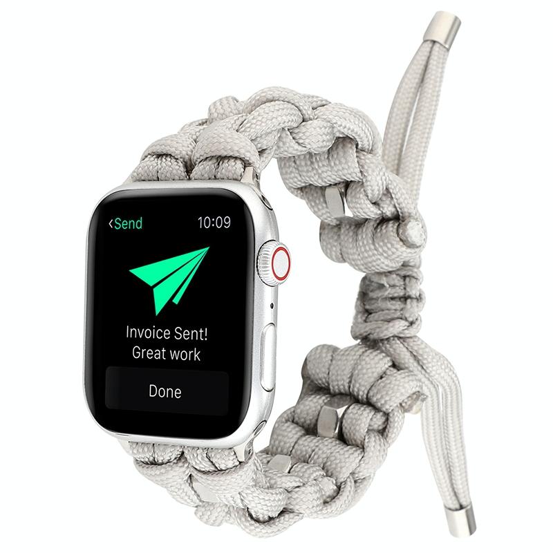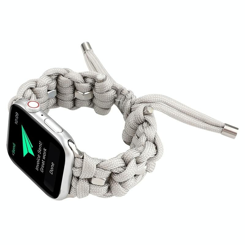 For Apple Watch Series 4 40mm Screw Nut Braided Paracord Watch Band(White)